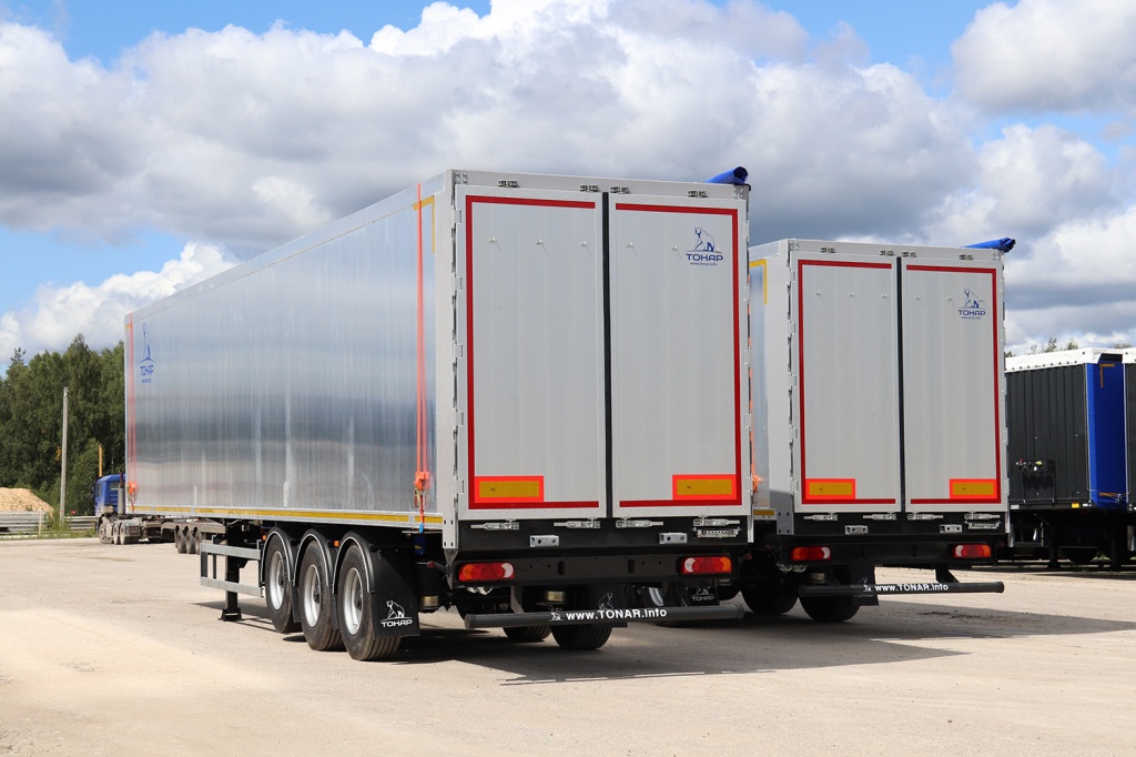 В этом году МЗ Тонар представил первый в России алюминиевый полуприцеп со сдвижными полами ТОНАР-95894, который сразу же стал одной из флагманских моделей этого года.