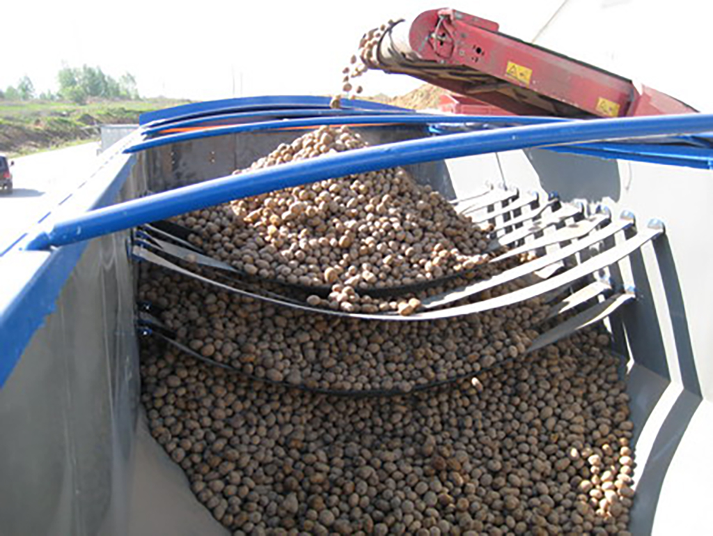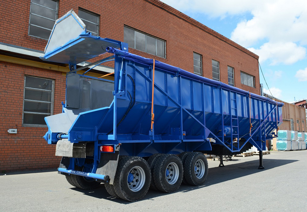 Полуприцеп-самосвал с с донным транспортёром. Для перевозки картофеля и других сельскохозяйственных культур с удельной плотностью не более 0,8 т.куб.м.