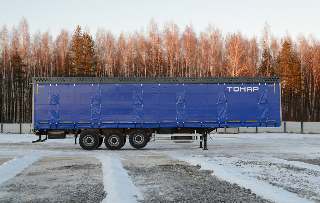 Крыша полуприцепа выполнена из ячеистой пластиковой панели.