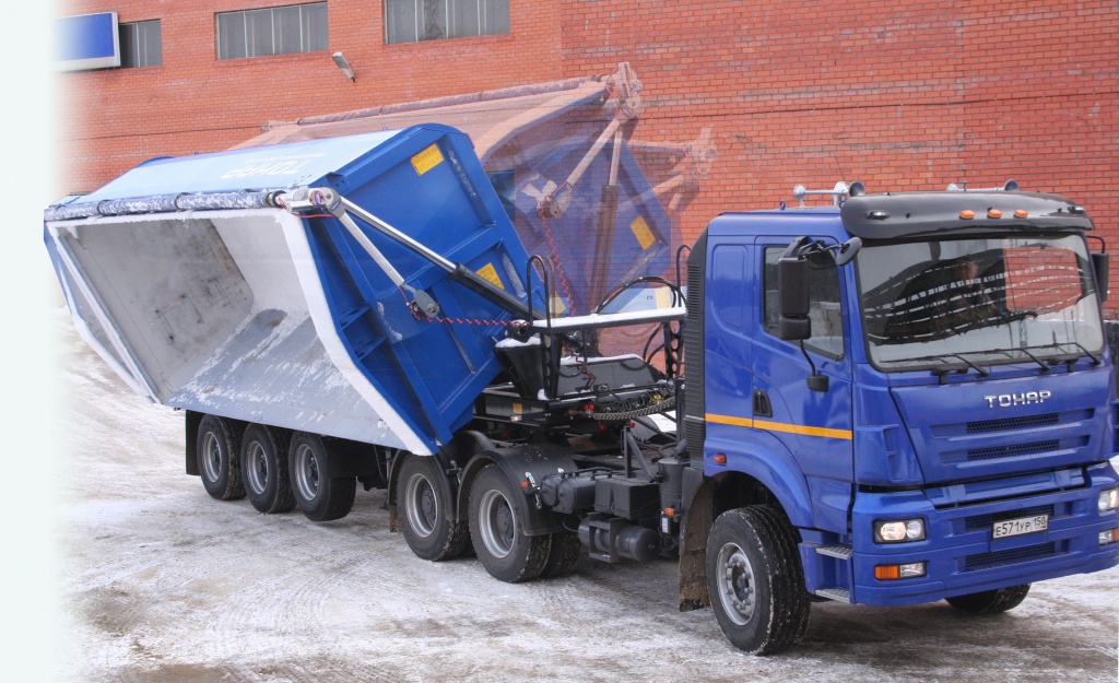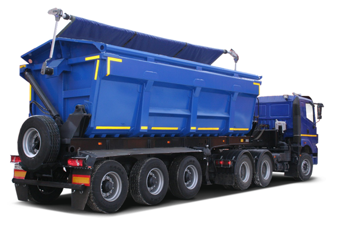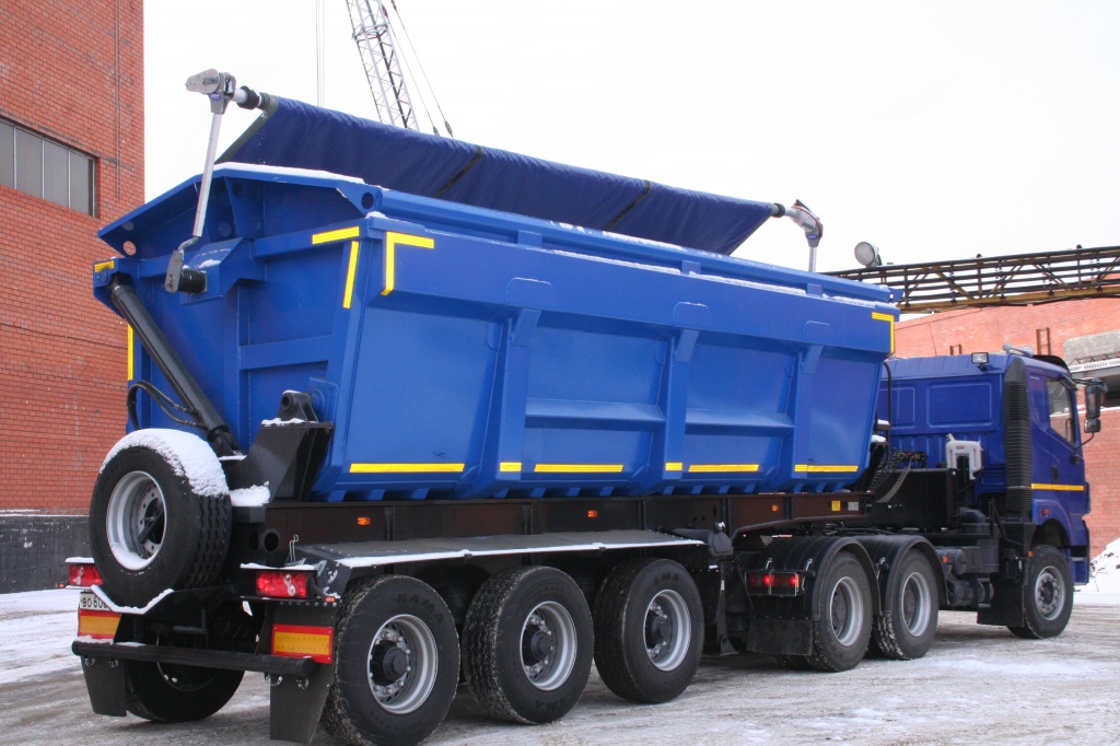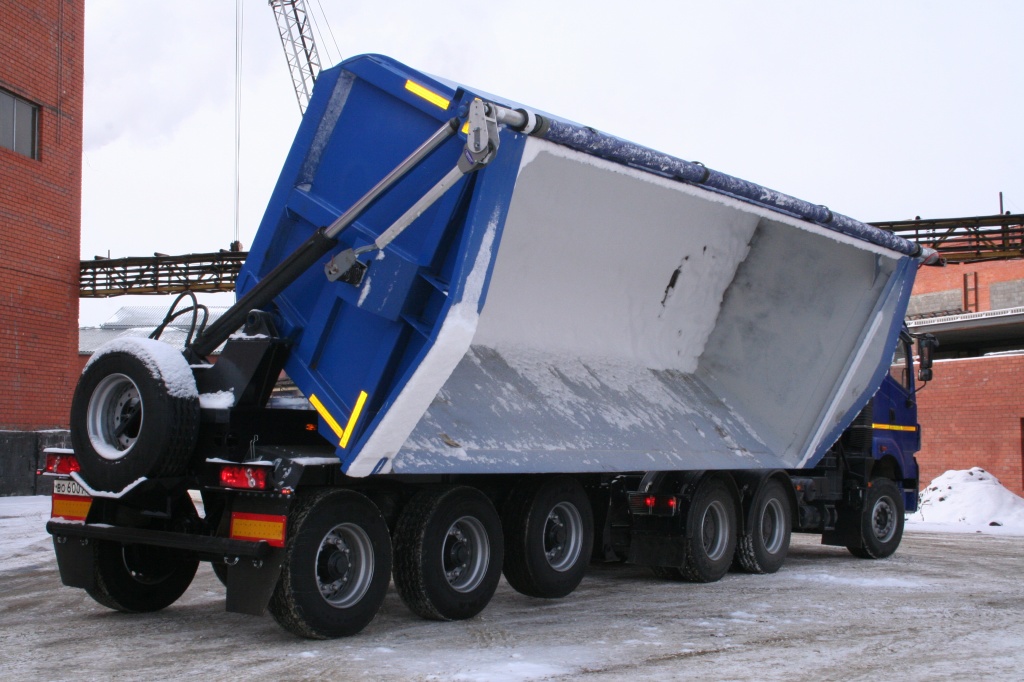 Полуприцеп-самосвал с боковой разгрузкой на правую сторону. Объём кузова 25,5 куб.м.