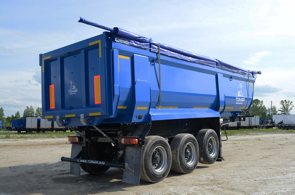 3-х осный самосвальный полуприцеп с традиционной разгрузкой “назад”. Объём кузова 29,4 куб.м. Автоматический механизм запирания заднего борта.
