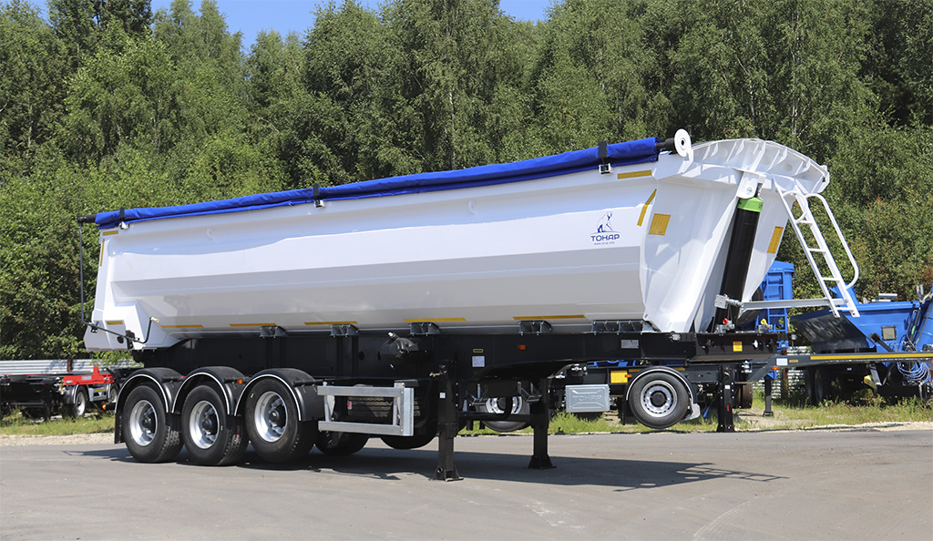 Для перевозки угля. Автоматический тент с электрическим приводом сокращает время на «растентовку» кузова с 10 до 1 минуты, а также увеличивает безопасность водителя особенно в зимний период.
