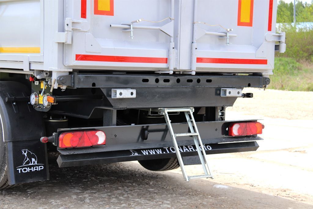 Подвеска у полуприцепа зависимая и установлена на продольных упругих рычагах, оснащенных пневмоэлементами и гидравлическими амортизаторами. Оси производства "Тонар".