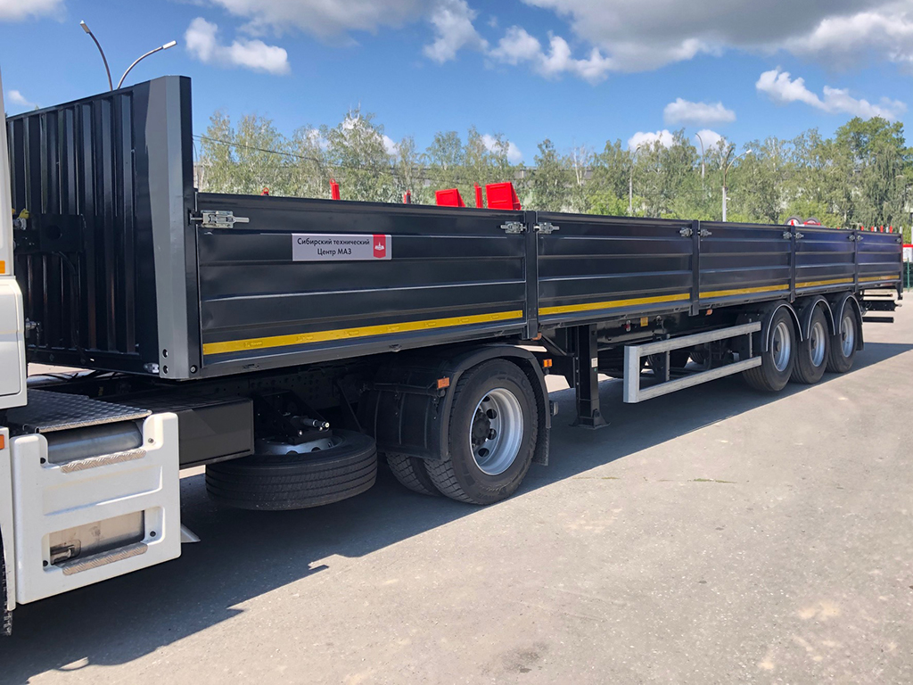 Отгрузка бортового полуприцепа с кониками.