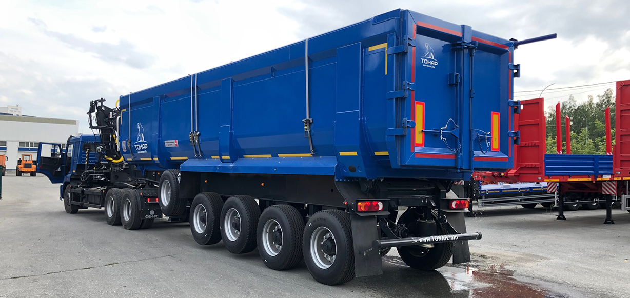 Объем 45 кубических метров, 4-х осная конструкция в сцепке с 3-х осным седельным тягачем КАМАЗ-65115 позволит без проблем проходить весовые контроли. Работать автотехника будет в Кемеровской области на демонтаже заброшенных угольных шахт.